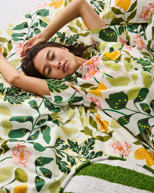 Cherry Blossom Adult Organic Cotton Short Sleeve Shirt & Short Pyjama Set