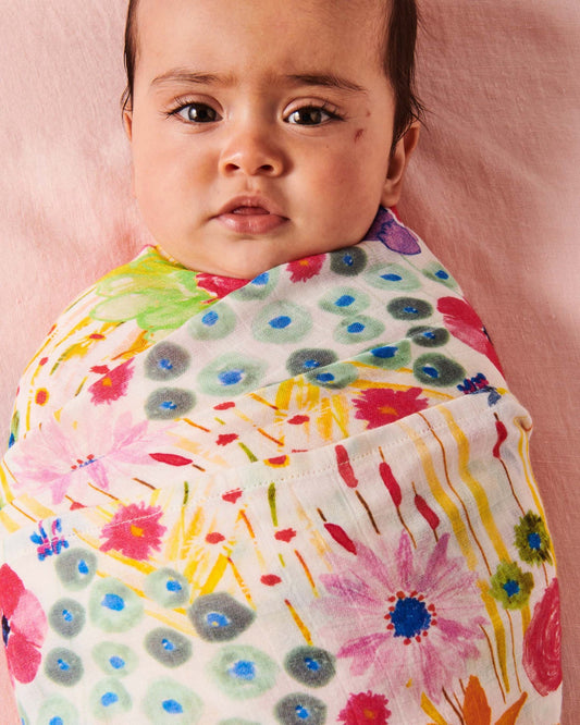 Frangipani Bamboo Swaddle Kip&Co X Ken Done