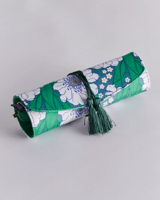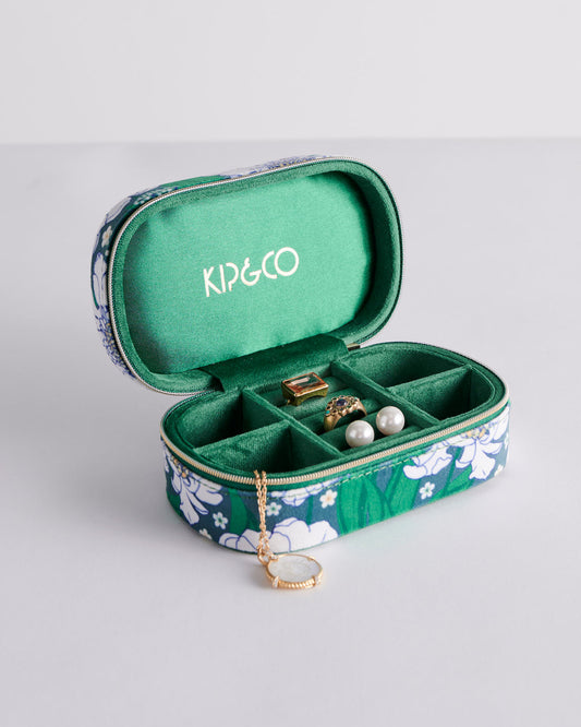 Tumbling Flowers Green Travel Velvet Jewellery Box
