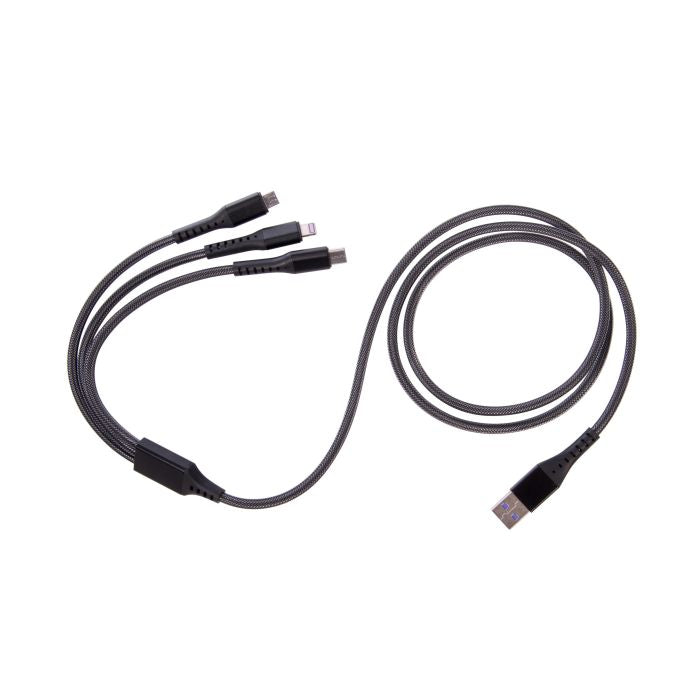 No need for multiple cables! USB-A input with USB-C, Mircro USB & lightning output.