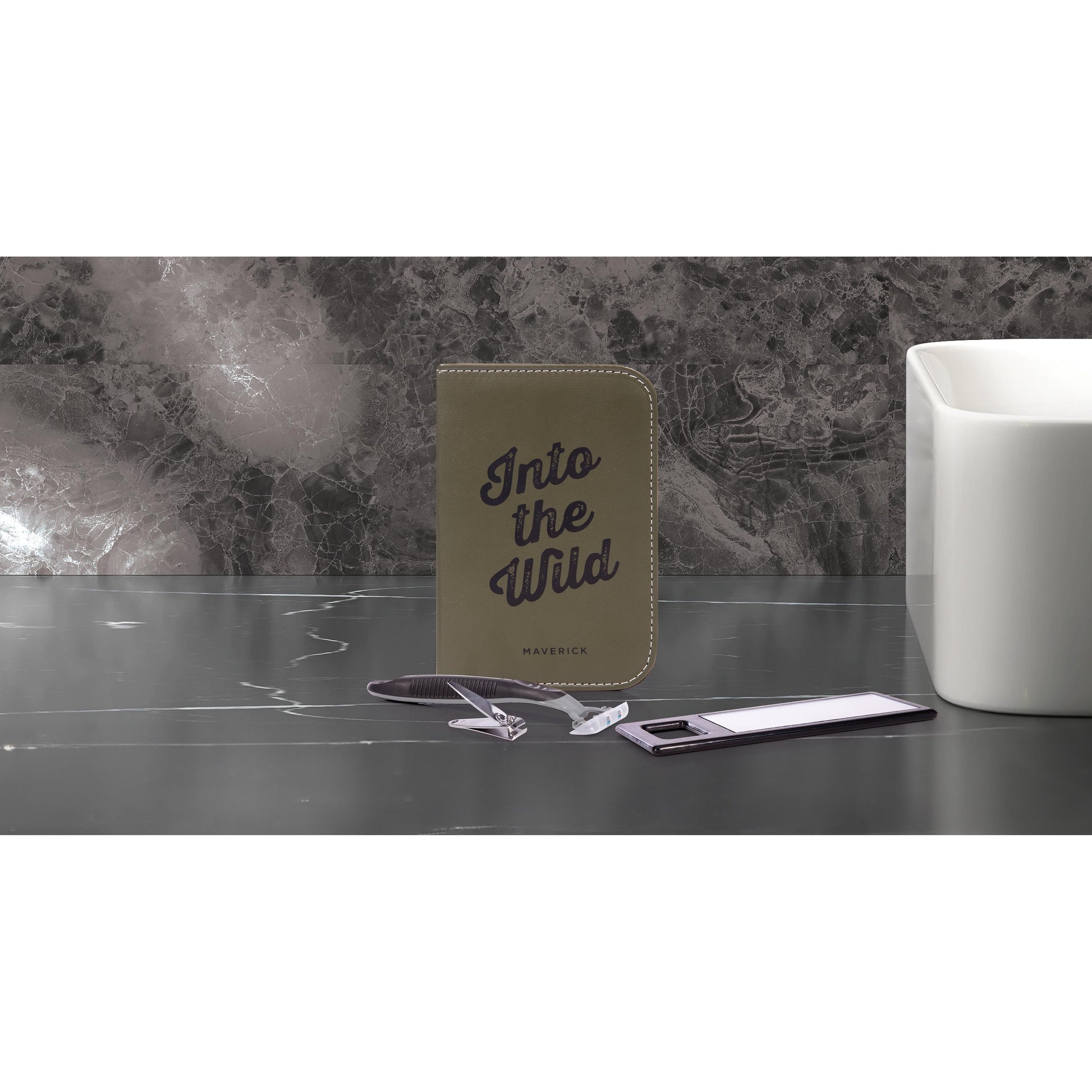 Includes: mirror, disposable razor, comb, compact toothbrush, shoe horn, nail clippers and waiter’s friend.
