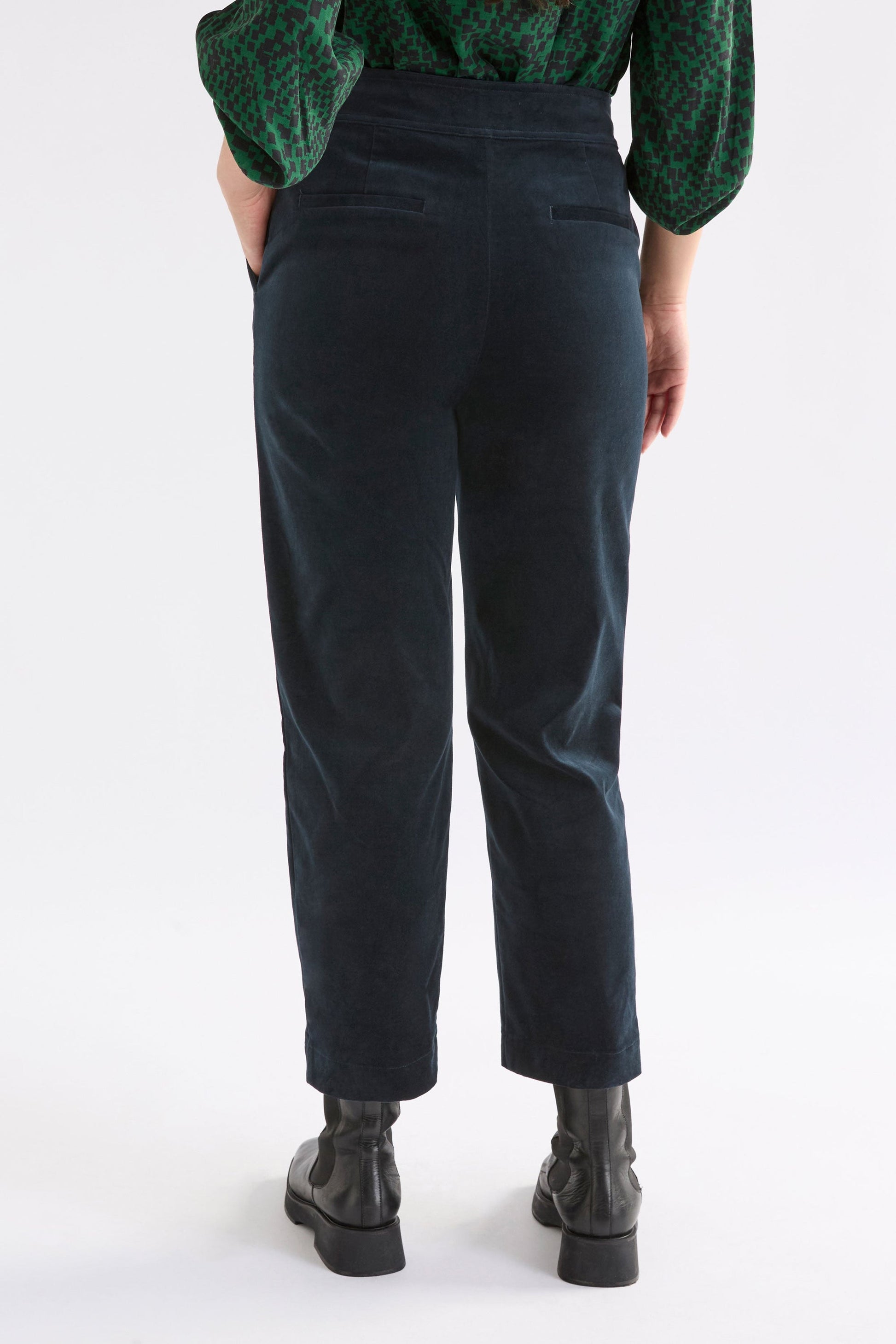 Both structured and soft, the Altes Pant is crafted from cut cord fabrication, offering the richness of velvet with a subtle texture. The high-waisted, tapered-leg silhouette creates a sleek yet effortless shape, grounded by a flat-front waistband and angled side pockets. A blend of 97% organic cotton and 3% elastane ensures a soft feel with just the right amount of stretch. Choose the bold Green Sinda Print to add interest to your curation of trousers, or opt for classic Dark Carbon for a refined everyday staple.