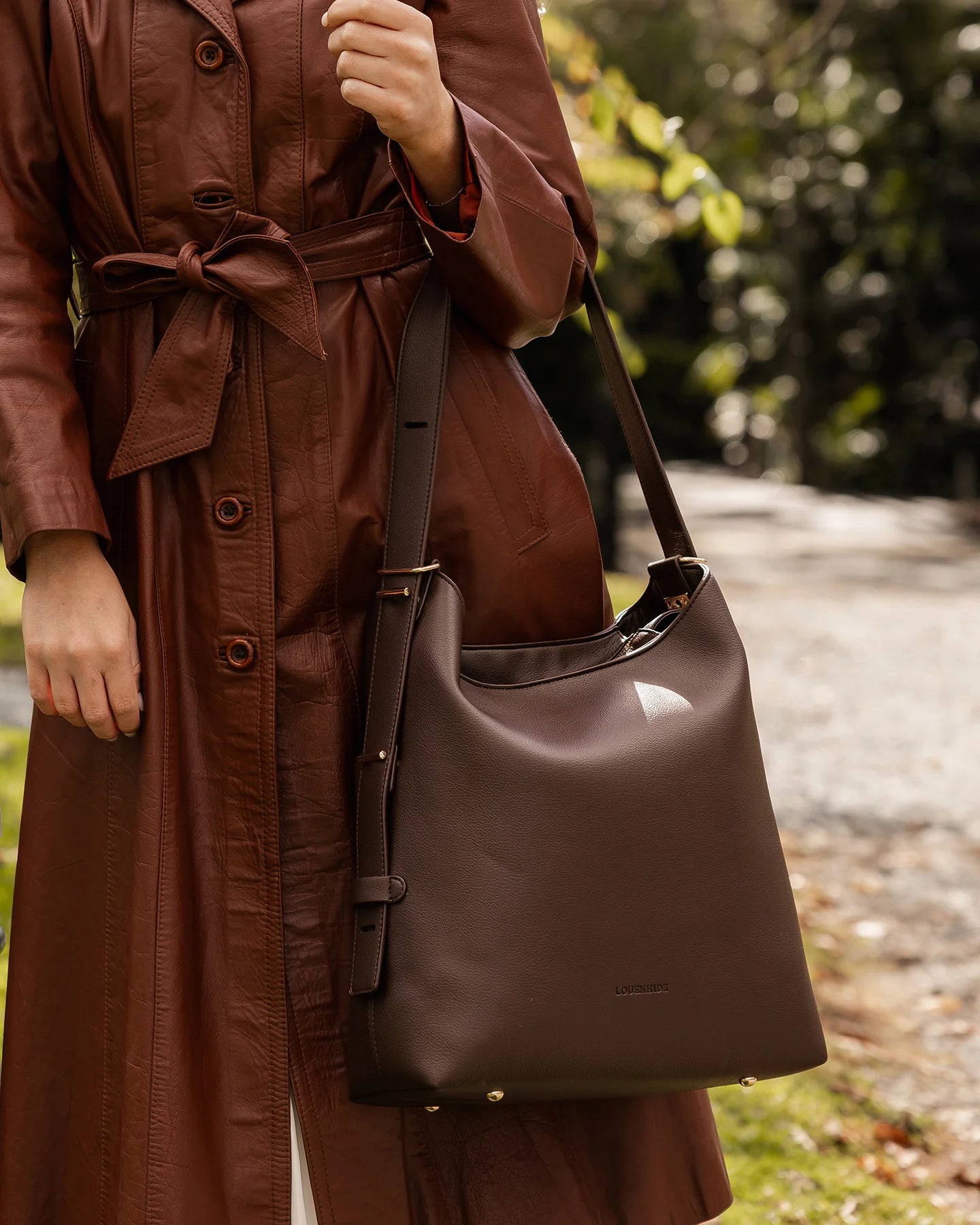 The Audrey Bucket Bag is a contemporary classic, reimagined with thoughtful design and understated elegance. Crafted from soft vegan leather, her structured silhouette blends everyday ease with elevated detailing. Featuring an innovative adjustable strap, Audrey offers versatile styling - worn high on the shoulder for a refined look or shortened for effortless top-handle carry. Spacious enough to hold your daily essentials, she is as practical as she is polished. Finished with clean lines and subtle hardware, this vegan leather bucket bag is a timeless staple that complements every outfit, every day.