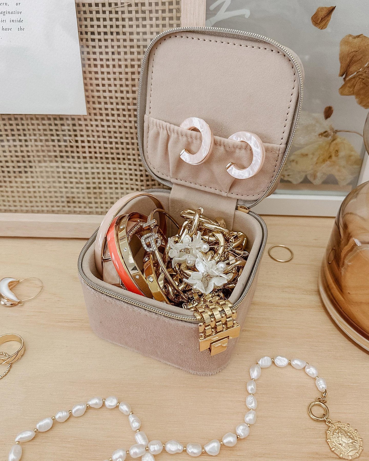 The Louenhide Beau Velvet Malt Jewellery Box is a small, square jewellery organiser designed to keep your bespoke pieces safe and secure at home or when you are on the go. Featuring a soft velvet exterior and a range of luxe colourways, the Beau Velvet Malt is every woman's dream jewellery case! Store your larger pieces in the main compartment, while safely stowing your smaller jewels in the elasticated slip pocket. Designed thoughtfully with a soft suedette lining, store your jewellery safely and securely in the Beau Velvet Malt Jewellery Box.