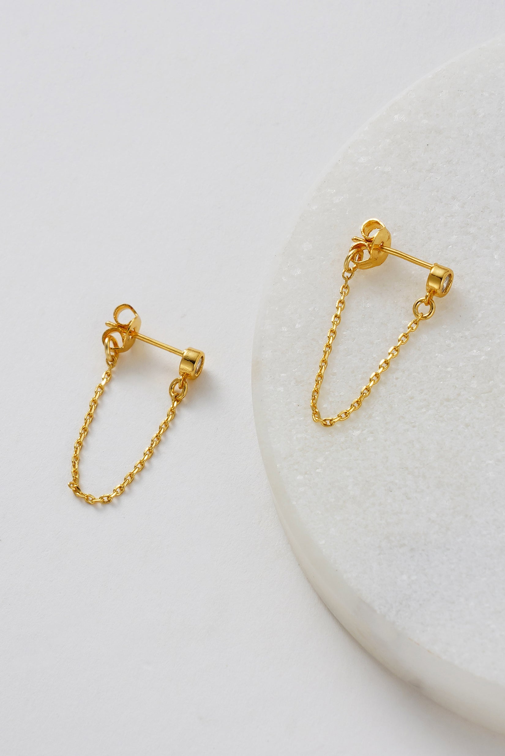 The Crystal Chain Wrap Earring is a modern take on a classic stud. Featuring a sparkling crystal set in a sleek bezel and a delicate gold or silver chain that wraps elegantly around the ear, this style blends subtle sparkle with edgy sophistication. Perfect for layering with other studs or hoops, it’s a versatile piece that transitions effortlessly from day to night.