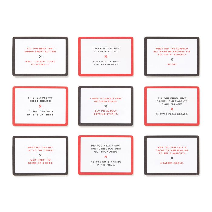 That's why this cargo-short-pocket-sized card deck is packed with a hundred terrible, ready-to-roll jokes--perfect for adding a few exasperated sighs to any occasion.
