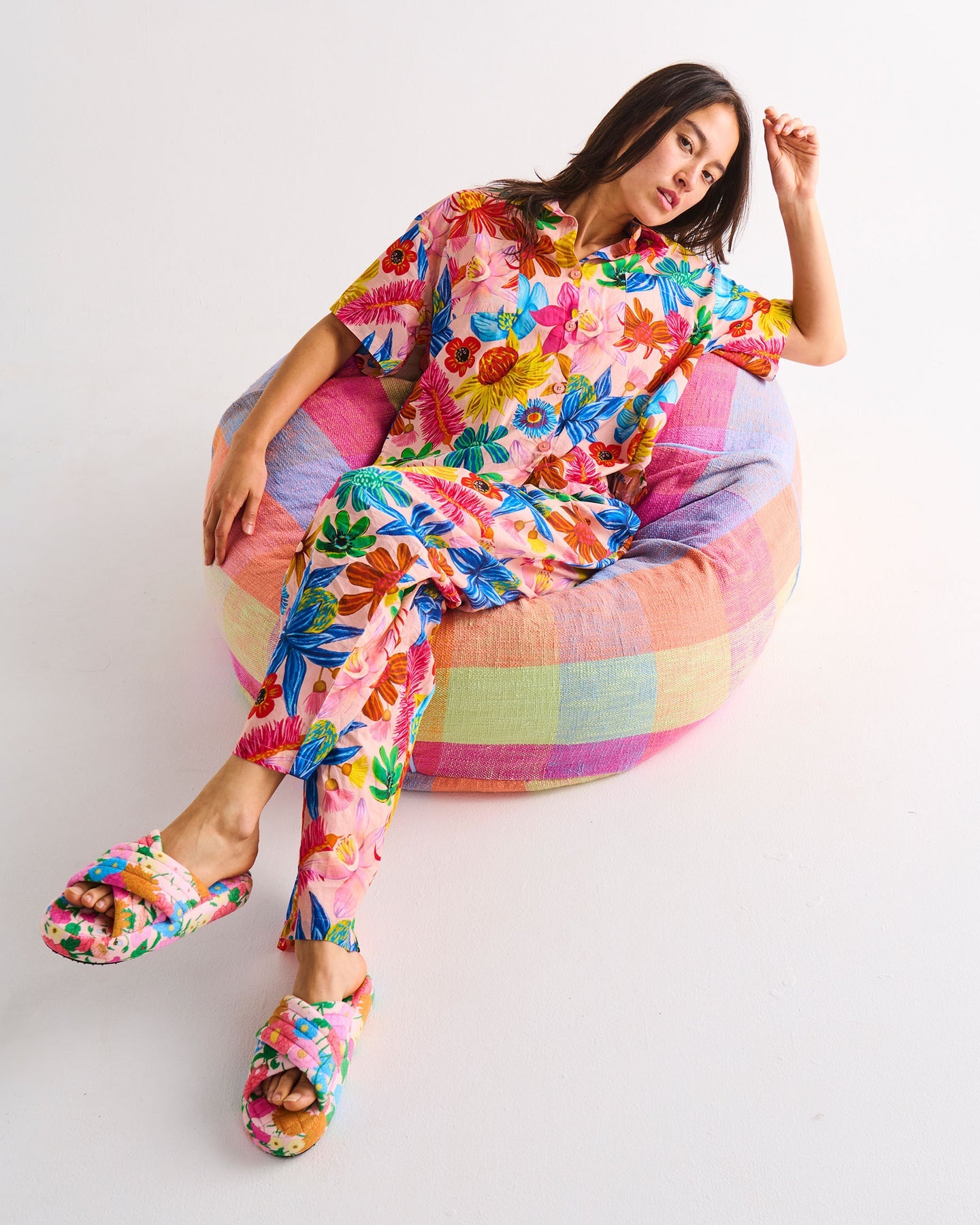 Slide into sunshine! Our Follow The Sun Quilted Velvet Slippers wrap your feet in plush comfort and effortless summer style. With a quilted velvet finish featuring hand-drawn florals on a light pink base, they’re perfect for lounging around the house, morning coffees on the balcony, or kicking back after a big day. Bring a little warmth, a lot of comfort, and a pop of Kip&Co colour to every step.