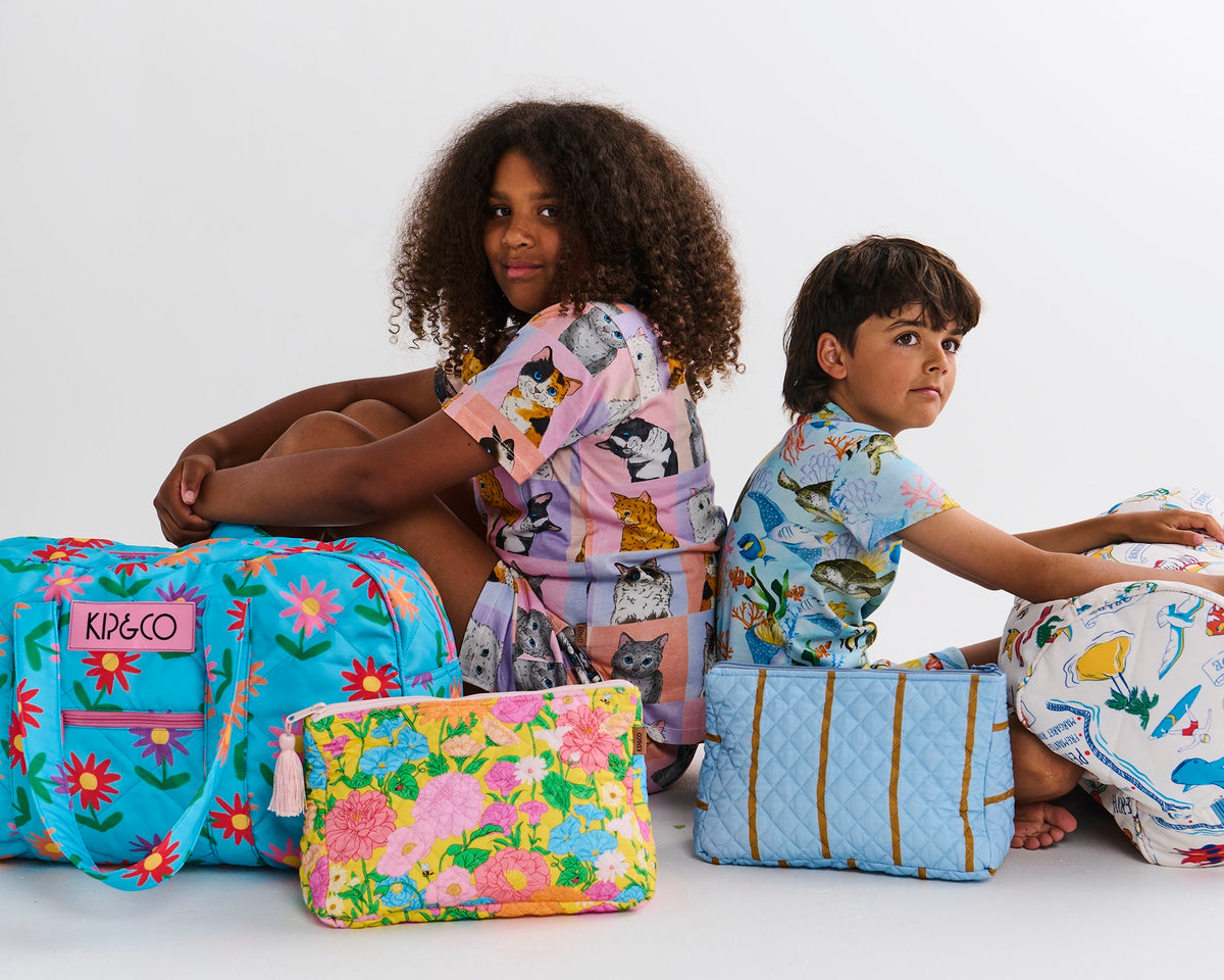 Pack a little sunshine wherever you go! Our Follow The Sun Yellow Quilted Cotton Toiletry Purse is soft, secure, and dosed with Kip&Co colour, perfect for keeping all your everyday essentials in one happy, organised spot. Made from quilted cotton that hugs your toiletries, it features a generous interior to make packing for travel or weekend adventures effortless. Whether it’s your bathroom counter or your suitcase, this bag adds a pop of playful to every day. Featuring hand-drawn florals in shades of pink, orange and cornflower blue, dotted with friendly little bees and lady beetles on a radiant yellow base with a soft pink tassel.