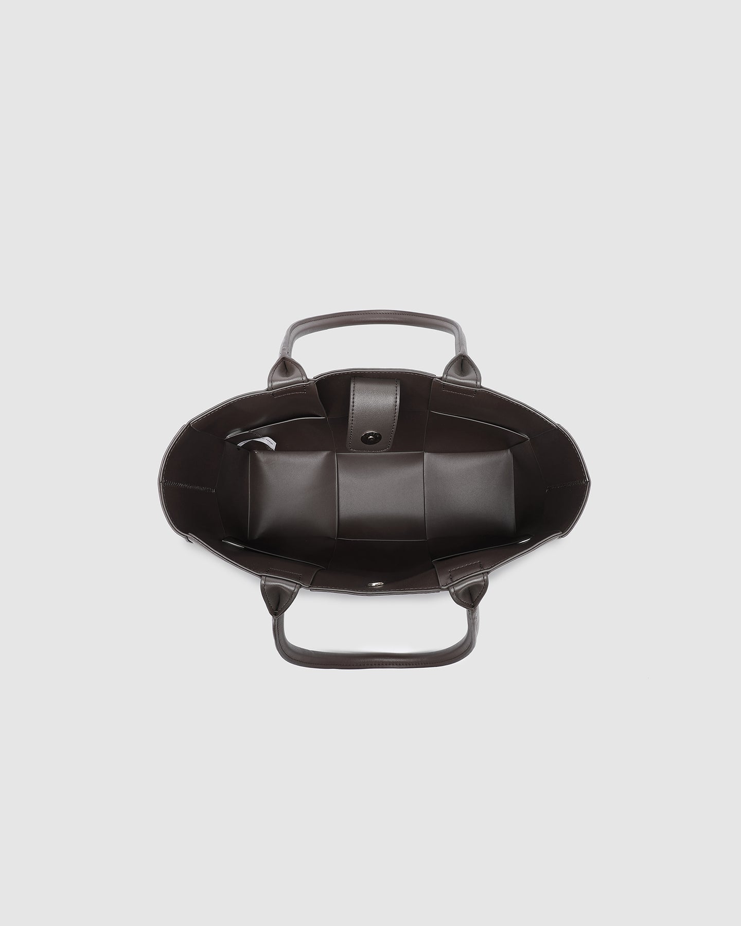 The Gwen Handbag brings quiet confidence to your everyday style — structured, textural, and effortlessly composed. Designed in a clean, tailored silhouette, this woven shoulder bag showcases smooth vegan leather and is finished with dual top handles for a refined touch. Compact yet considered, Gwen offers just the right amount of space for your daily essentials, secured with a discreet magnetic closure for ease and peace of mind. Her woven detailing softens the structure, creating a thoughtful balance between grounded texture and elevated design. Equally suited to weekday plans and weekend errands, Gwen timeless silhouette works hard in any wardrobe.