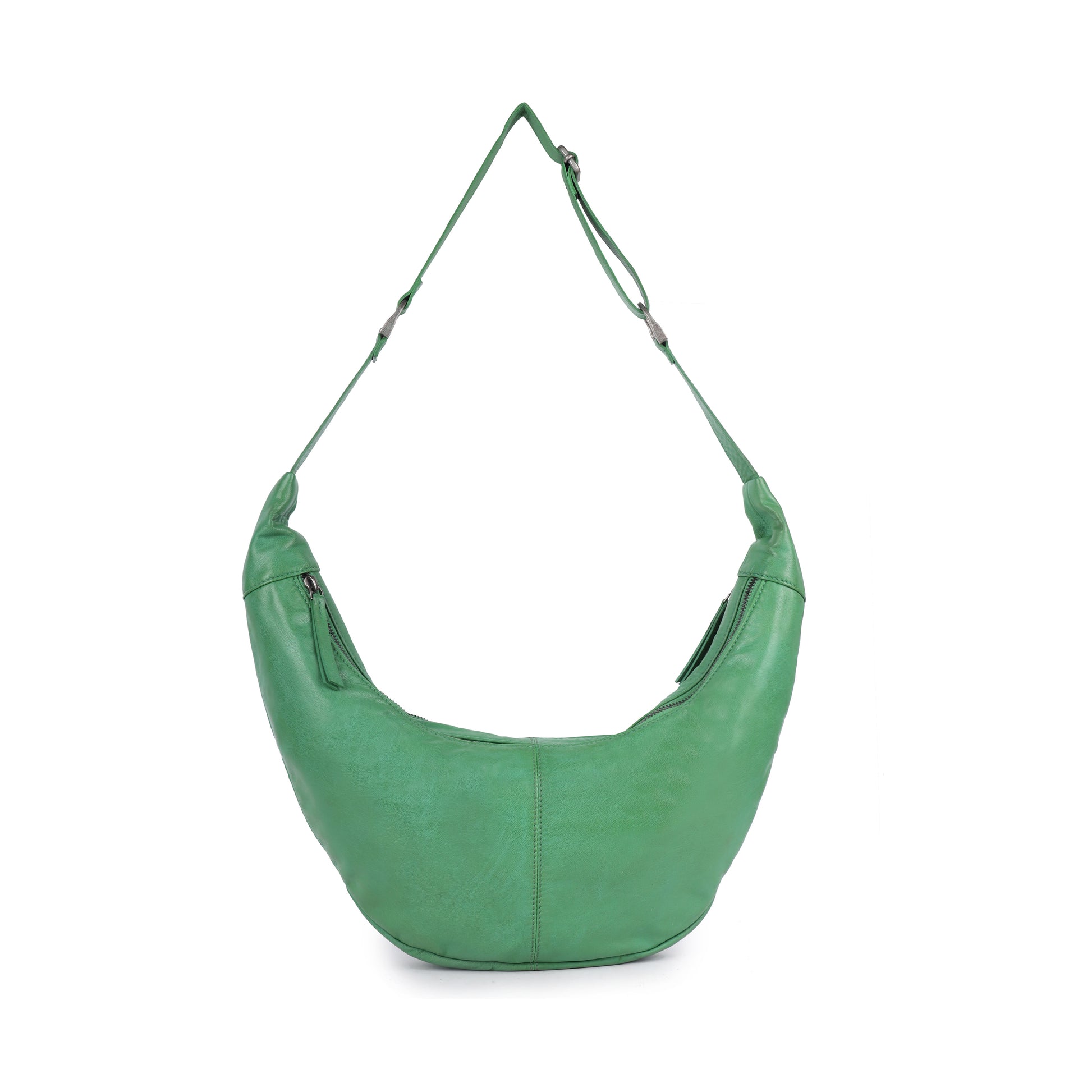 - Smooth leather with a relaxed, slouchy silhouette.