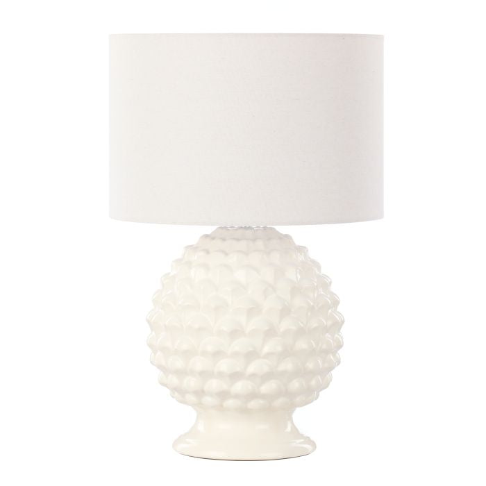 Society Home is an inviting and sophisticated collection, tied together by common threads of elegance and refinement. This Macy Table Lamp will brighten your day in more ways than one. It features a sculpted white ceramic base with a raised dotted motif and linen shade. The elegant heritage-inspired design is a stylish and practical statement piece in any home. Place it on a bedside table, desk or console to create a comfortable reading or working nook. Available in medium and large sizes. Refine your interiors with this Macy Table Lamp from Society Home.