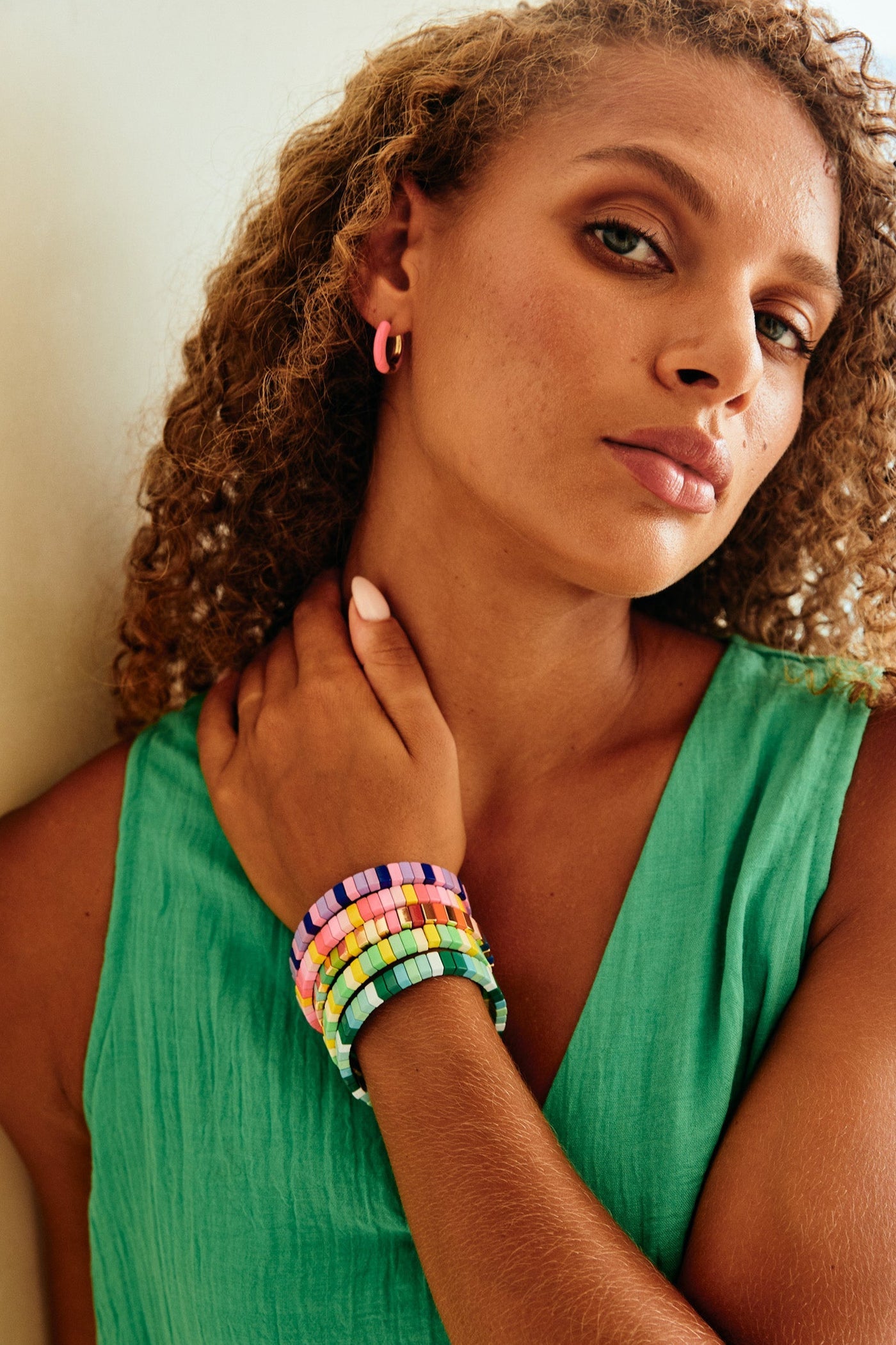 These enamel hoops will be your new summer staple. Add a pop of playful colour to any outfit.