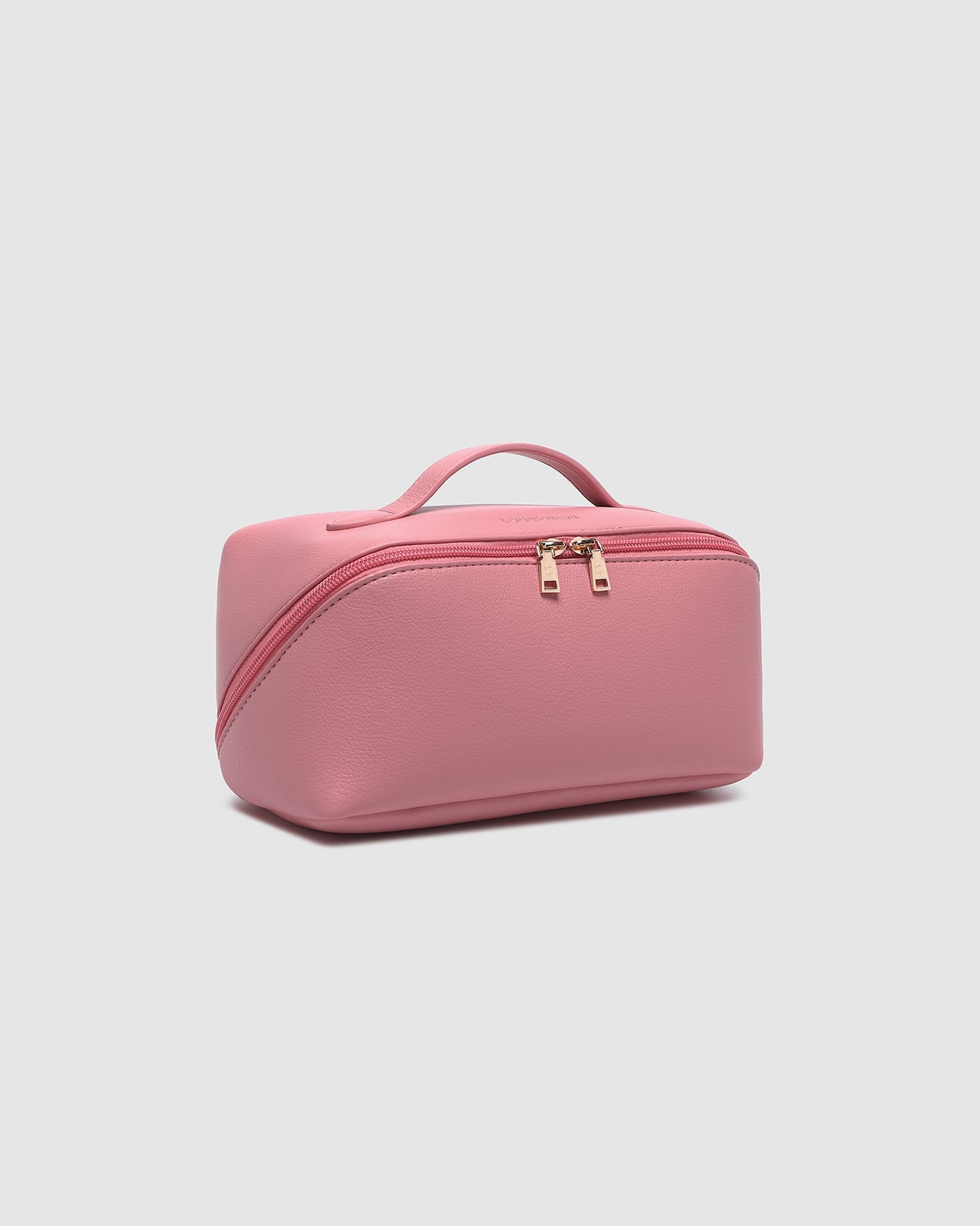The Mary Cosmetic Bag was designed with ultimate convenience and organisation in mind. No more digging around or struggling to find what you need, with its wide opening and unique silhouette, this women's cosmetic case opens to lie completely flat on any counter, giving you easy access to all your beauty essentials at once. Featuring 2 main compartments, 1 zip pocket and 3 slip pockets, this travel toiletry bag ensures each item has a its designated spot. Whether you're a jetsetter, or simply seeking a well-organised solution for your beauty essentials, this makeup bag is the answer to all your needs. *Beauty products not included.