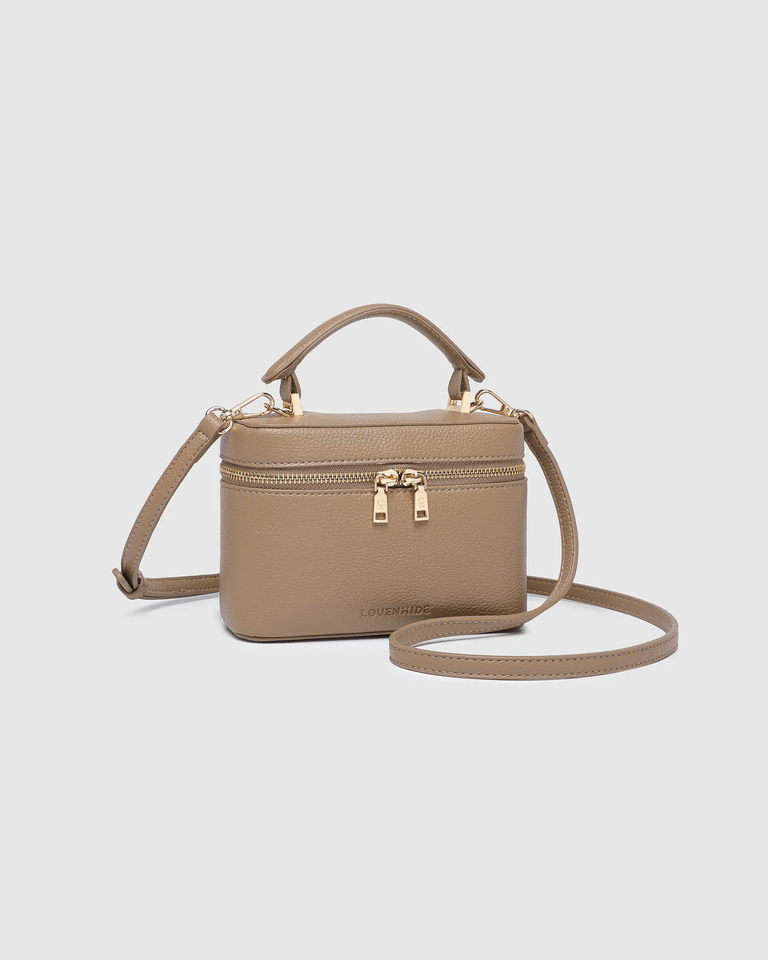 The Palma Crossbody Bag is a refined companion designed for sun-drenched days and balmy evenings. A small, structured bag with gold chain detailing, Palma brings a touch of polish to relaxed summer styling. Crafted from smooth vegan leather, this elegant top handle bag also features a sleek crossbody strap and a light gold chain - offering multiple ways to wear, from poolside cocktails to golden hour strolls. With a secure double zip closure and timeless hardware, Palma is as practical as she is elevated. Her compact silhouette adds structure to breezy outfits, making her the ideal event crossbody bag for long lunches, sunset soirées, and everything in between. Understated yet luxe, Palma is your invitation to linger in the moment - wherever summer takes you.