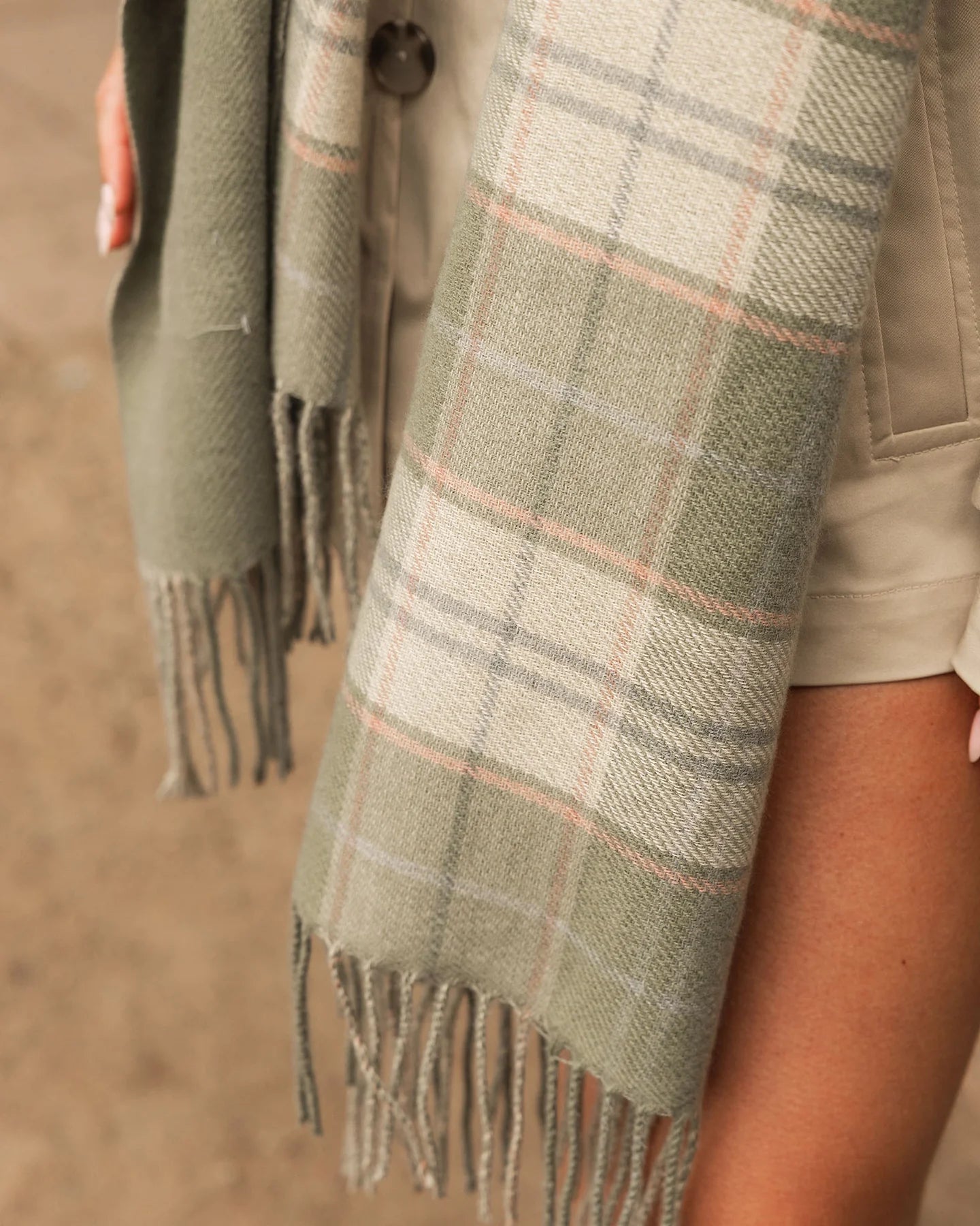 The Somerset Sage Green Scarf lends a touch of quiet luxury to your winter wardrobe. Crafted as a versatile warm scarf, she offers a soft, inviting feel that keeps you comfortable on crisp days. Whether styled loosely or wrapped for extra warmth, Somerset elevates any cold weather look with ease and sophistication.