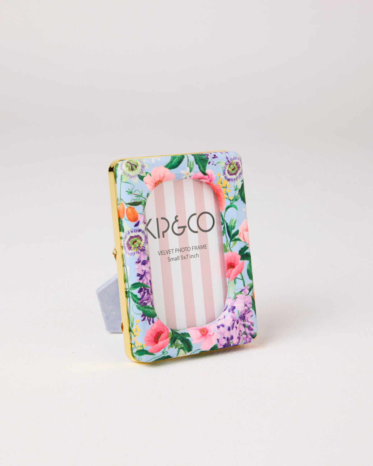 Frame your faves in something a little extra! Our Spring In The Air Oval Velvet Photo Frame turns treasured moments into mini works of art, wrapped in lush, touchable velvet for that hint of fancy. Whether it’s a snap of your loved ones, your pet, or that one perfect holiday pic, this frame brings a pop of colour, texture, and fun to shelves, dressers or bedside tables. This dimensional beauty features a stunning mix of springtime florals and fresh fruits on a soft light blue base with an oval window frame.