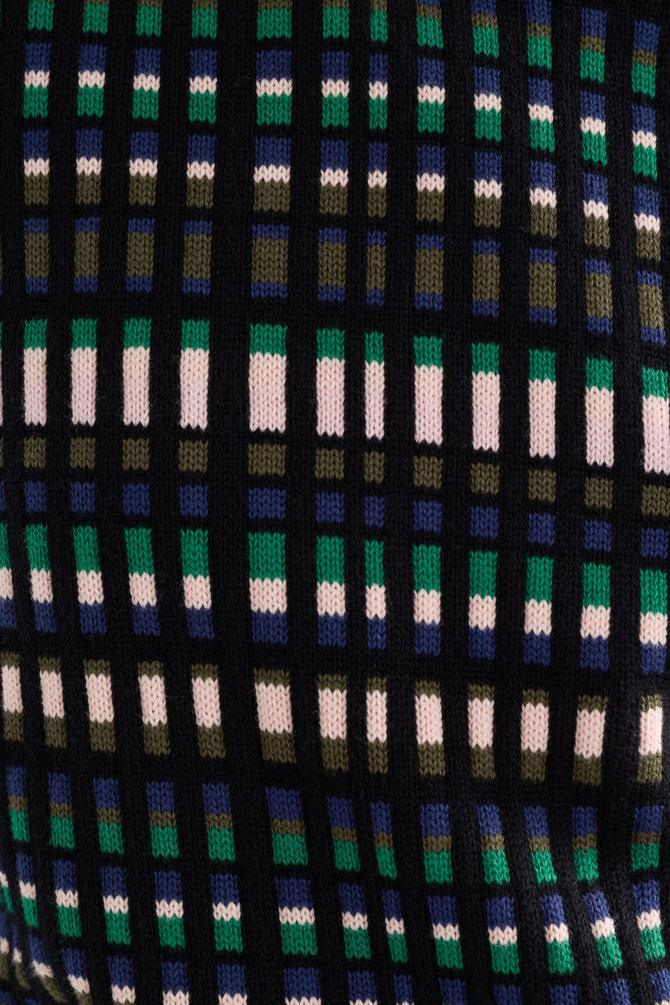 The Svea Organic Knit Sweater is a striking knitted pull-over, crafted from a soft organic cotton. This regular fit style features a crew-boat neckline, long set-in sleeves, and a mid-gauge knit construction in a graphical check pattern of steel blue, verdant green, cream and black. An ELK favourite shape with a streamlined slim silhouette and stretch from the knitted construction. A versatile sweater that pairs with the matching Svea Organic Knit Skirt for a fun statement look, or tailored trousers or denim for everyday wear when you want to add a pop of colour to your autumn-winter looks.