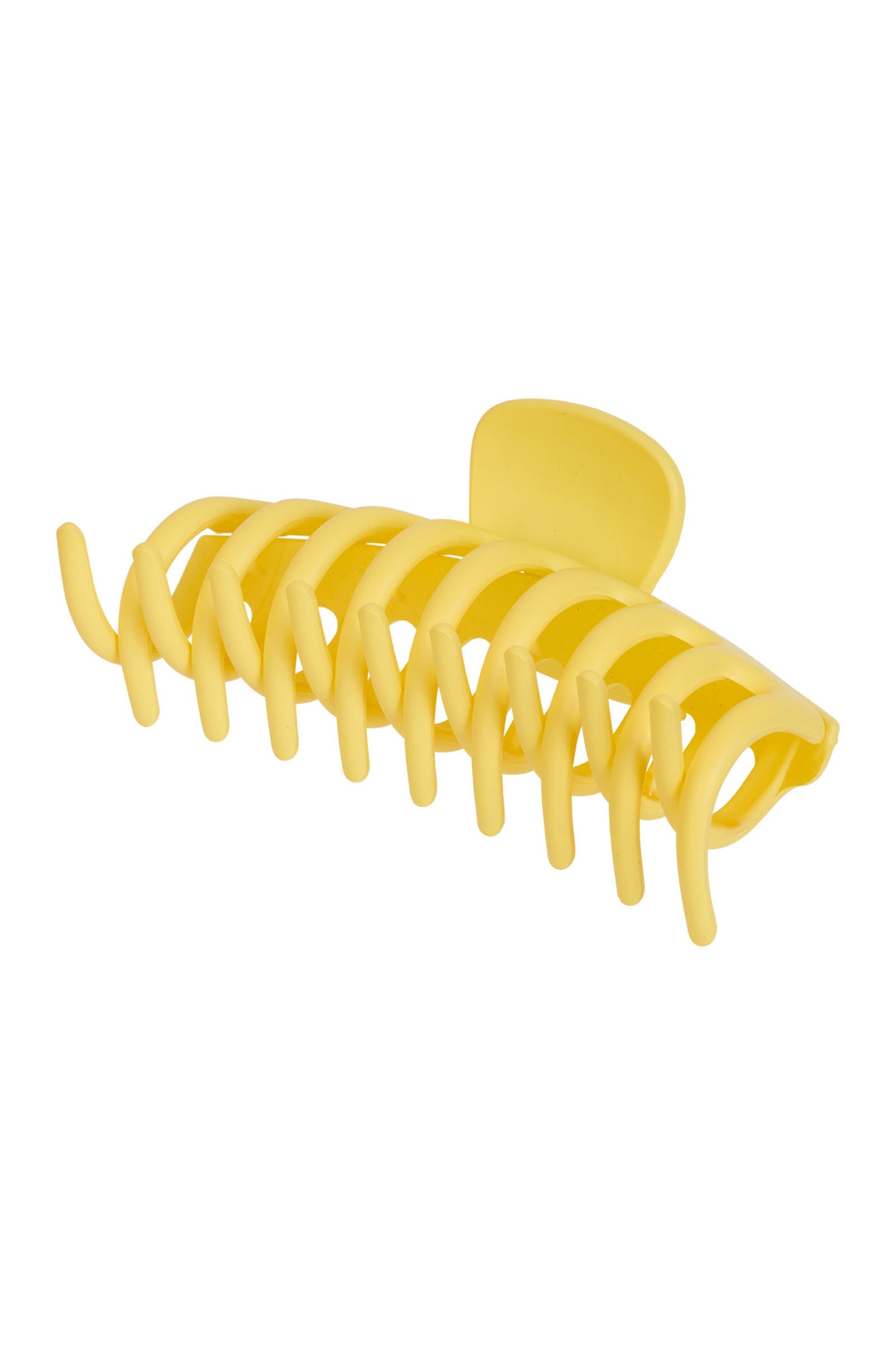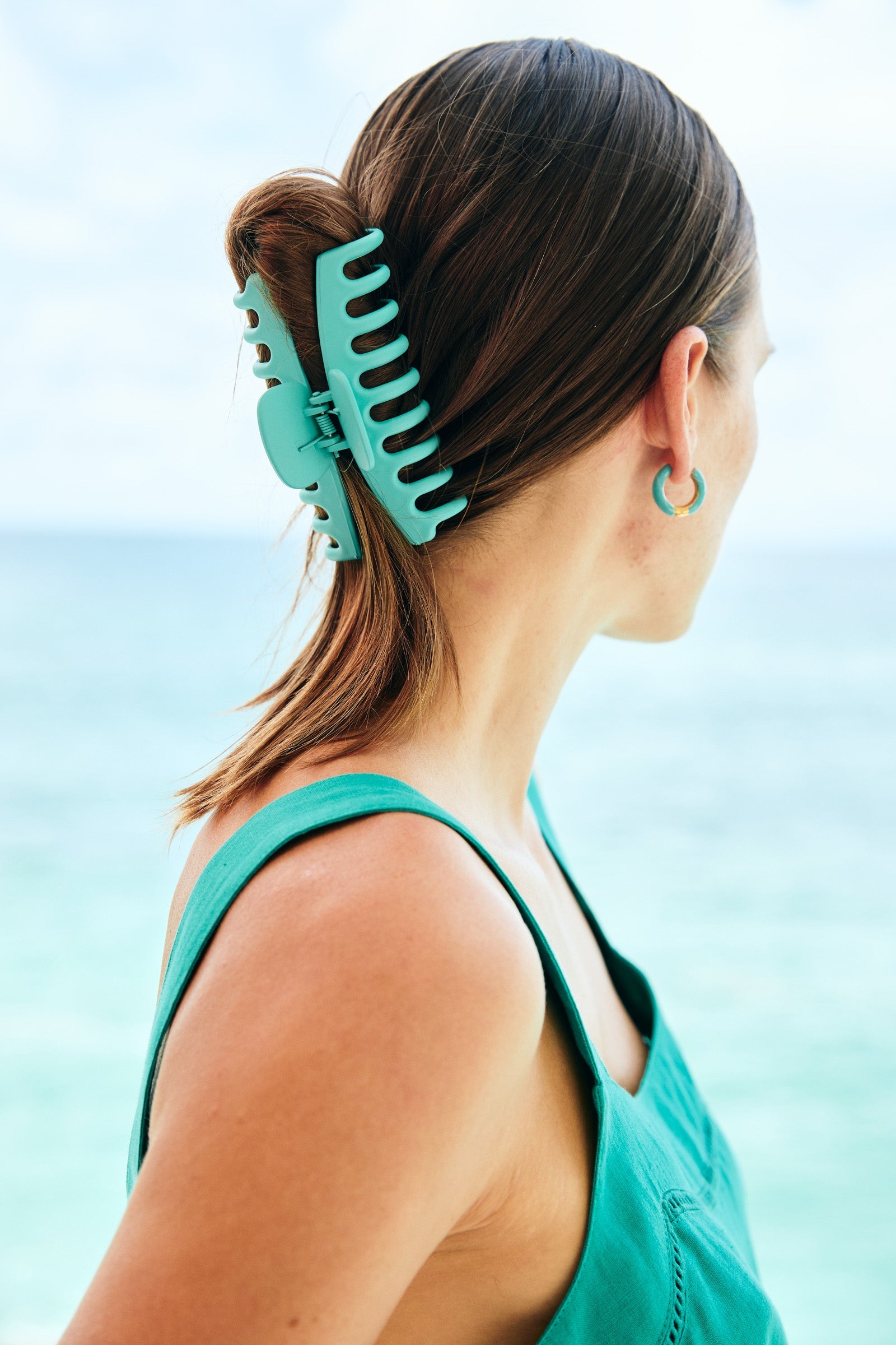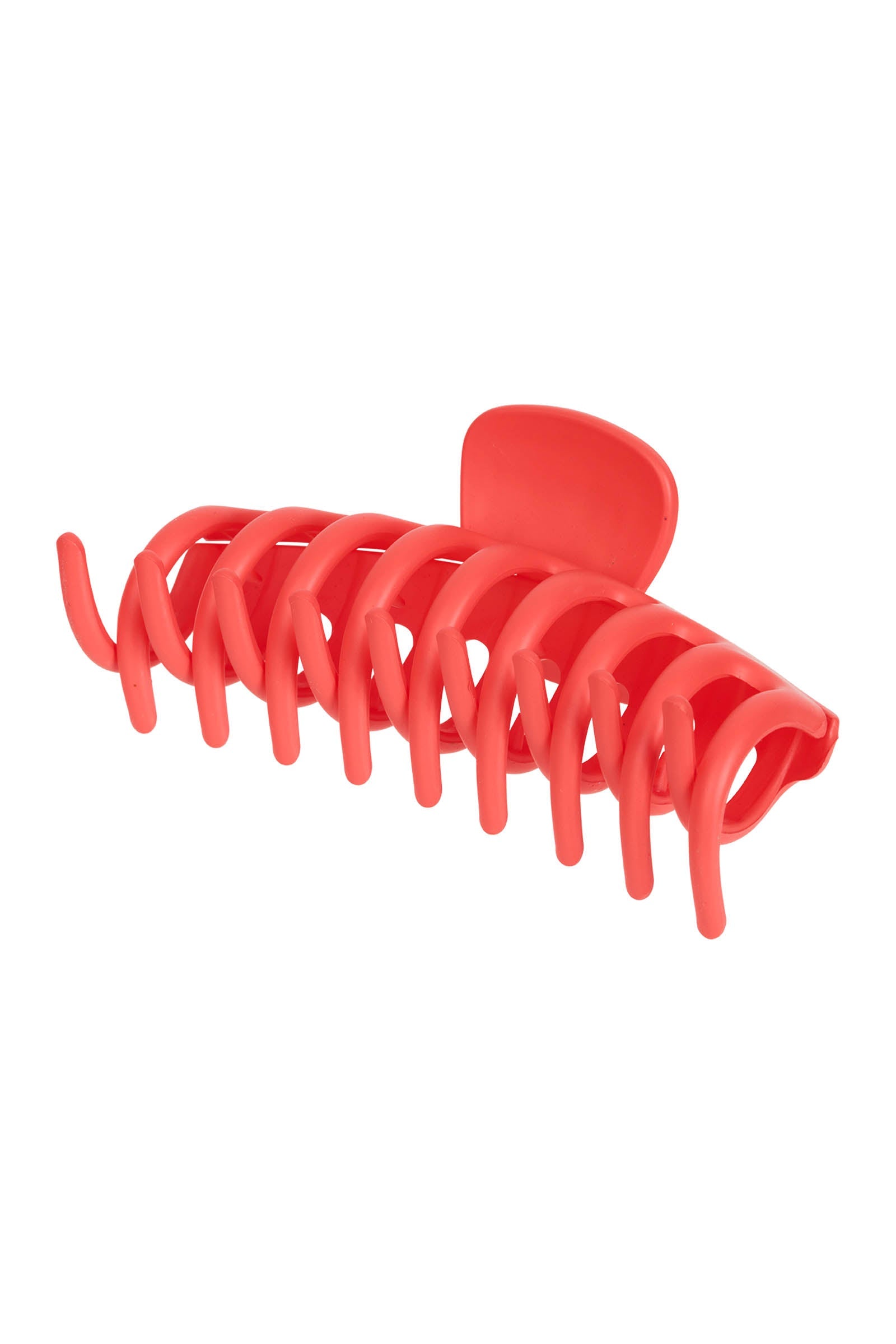 A bold enamel-coated hair claw clip in a larger statement shape. Offering a practical hold for thick hair, with a playful pop of matte colour.
