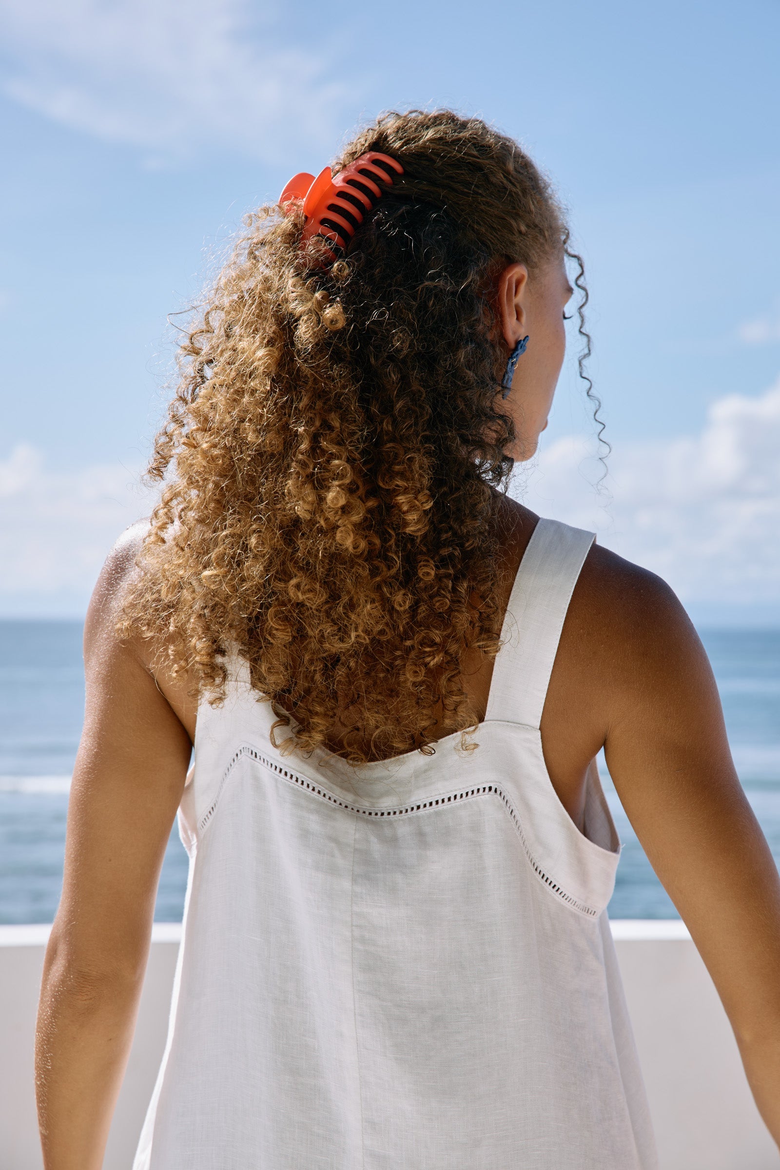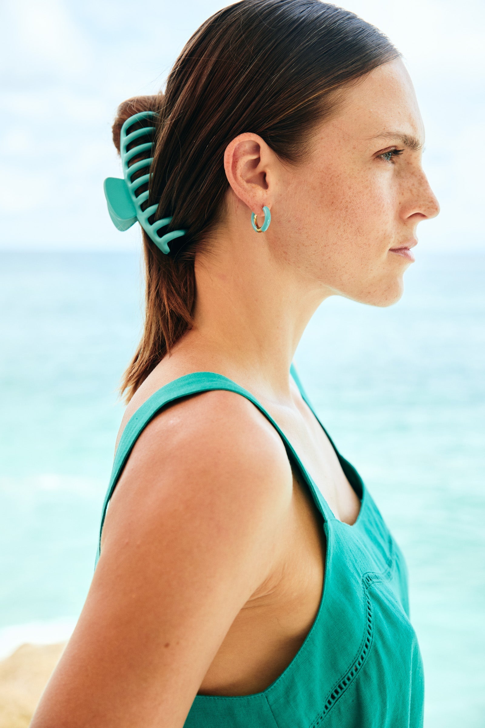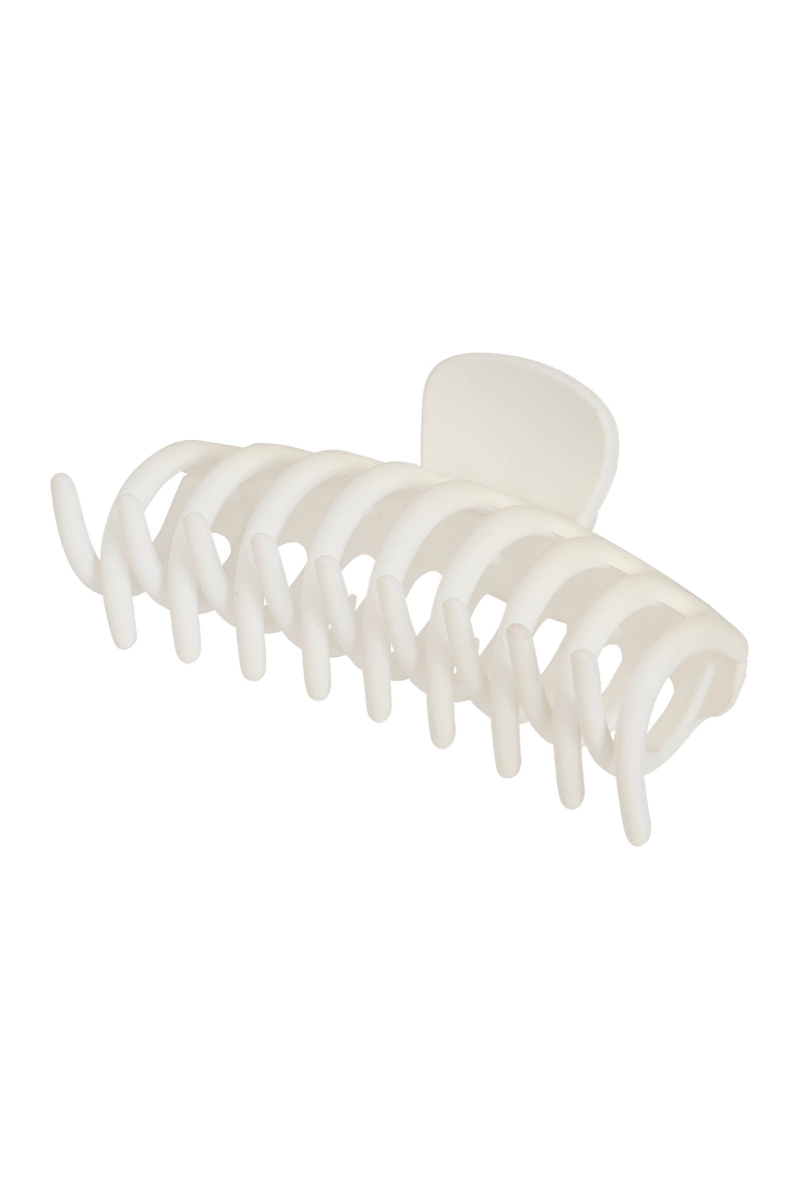 A bold enamel-coated hair claw clip in a larger statement shape. Offering a practical hold for thick hair, with a playful pop of matte colour.