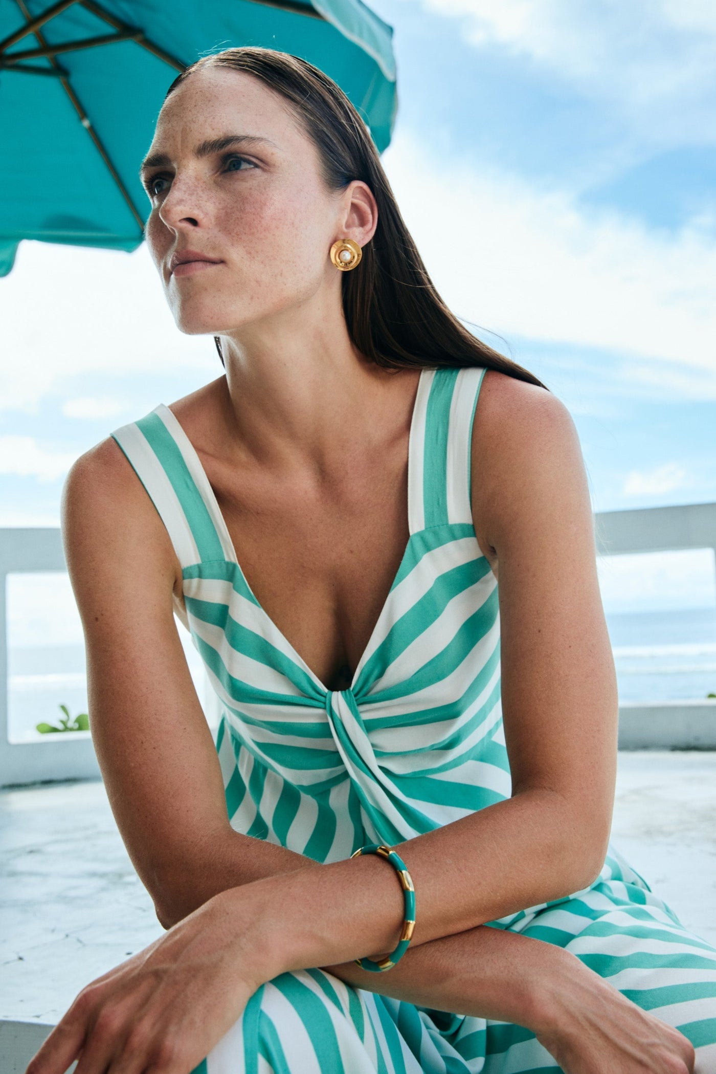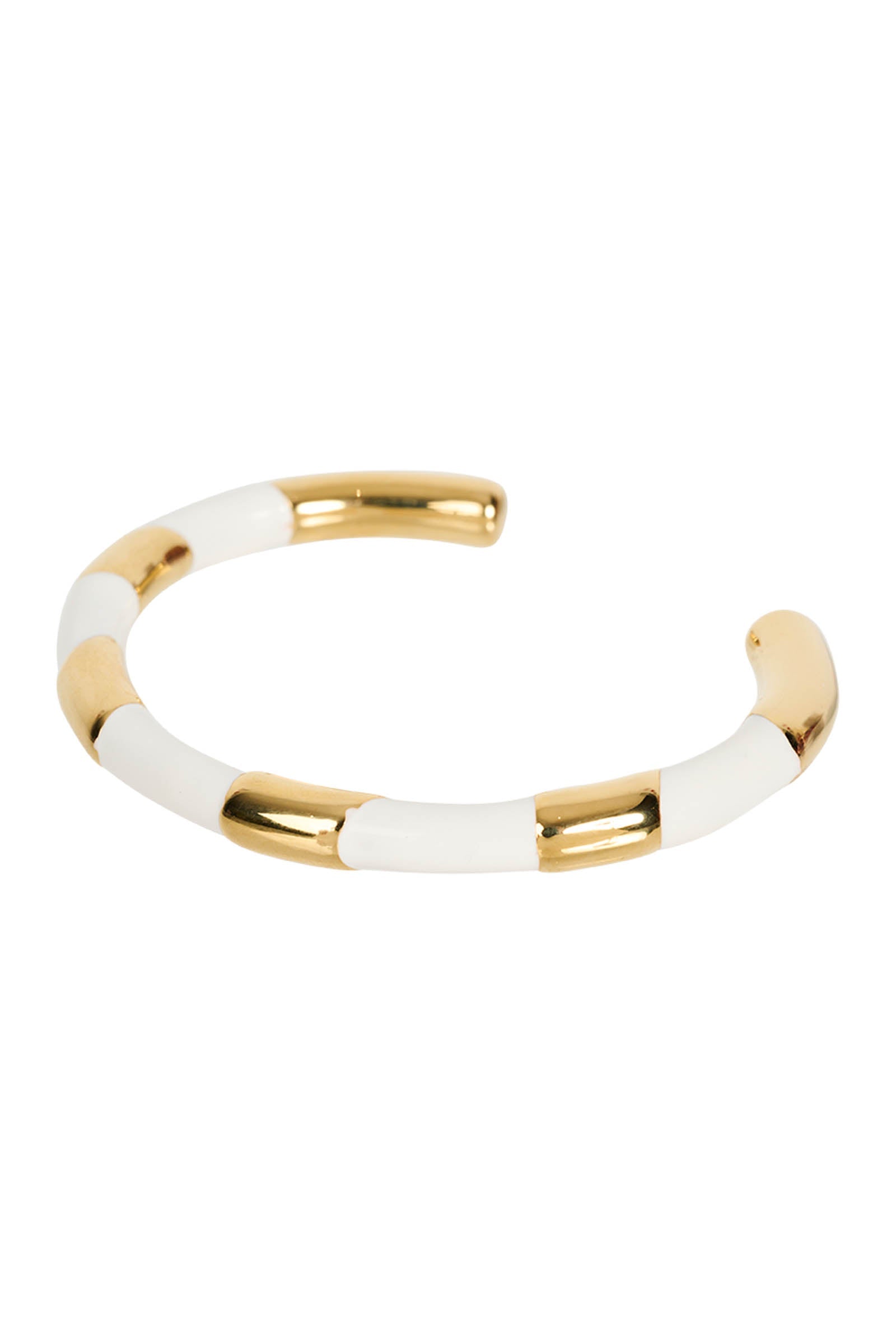 A twisted open cuff bracelet in enamel and gold-tone finish. Bold and versatile.