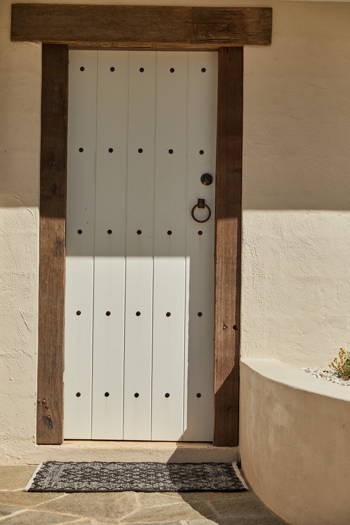 The Wilder Door Rug, made with jute and cotton, features an intricate and bold diamond embroidered patterning and a deep earthy palette with contrasting reinforced edging. This simple design will speak volumes about your taste, style, and affinity for natural living.