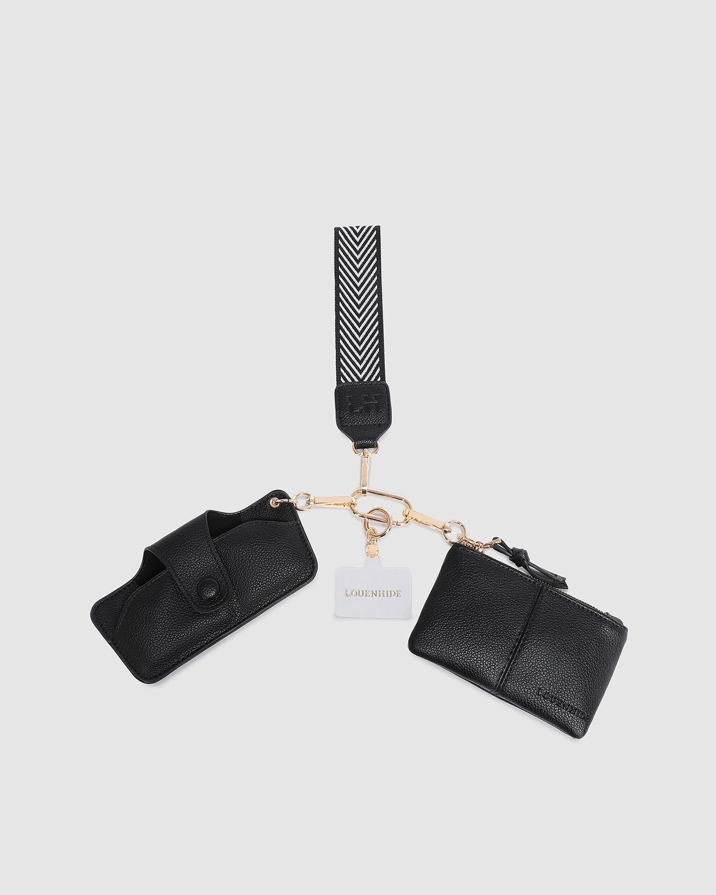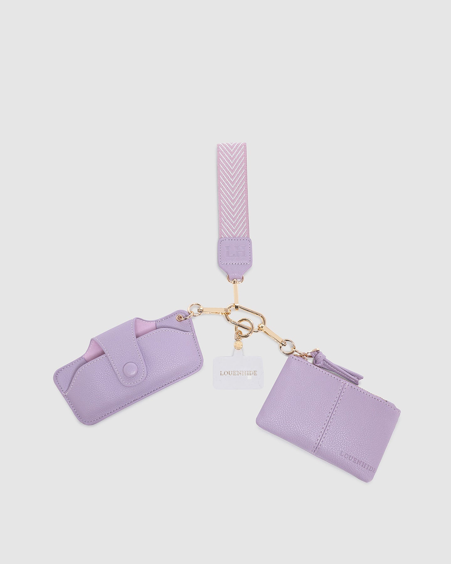 The Ziggy Accessory Bundle is the ultimate compact essentials kit for handbags, thoughtfully designed to keep your daily routine effortlessly organised. This curated set combines four functional accessories into one stylish bundle - secured with a Caribou clip to keep everything neatly in place. Inside, you’ll find the Skittle Sunglass Case, crafted from soft vegan leather with a plush suede lining and finished with a keyring clasp to attach easily to your bag or keys. The Lenny Purse is travel friendly with RFID blocking and features a slim, compact silhouette that’s perfect for storing coins, cards, or small essentials. The bundle also includes a sleek Iris Wristlet for hands-free ease, and a plastic phone converter clip to keep your tech adaptable on the go. Whether you're running errands, heading to brunch, or packing light for a weekend getaway, the Ziggy Accessory Bundle offers everything you need in one travel-friendly kit.